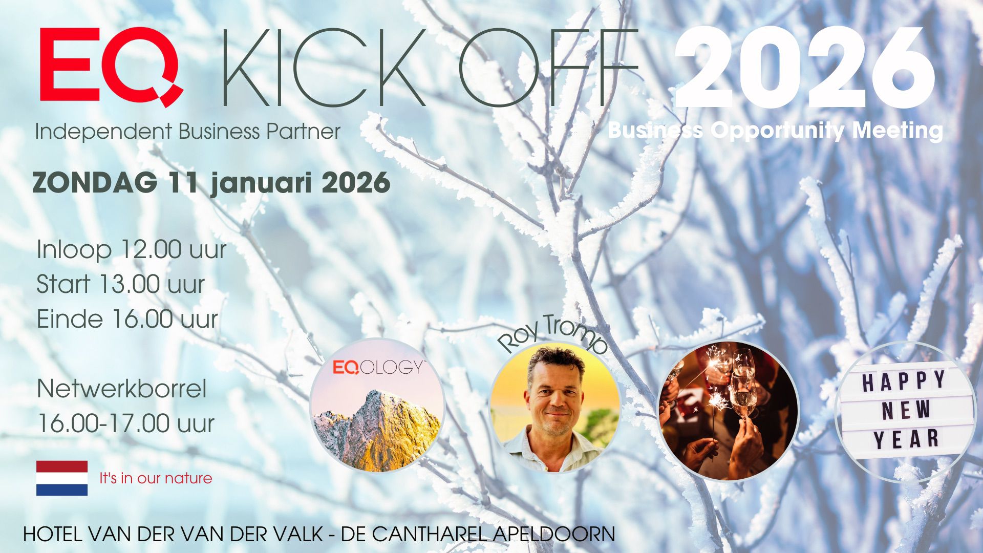 Sunday, January 11, 2026 marks the kickoff of the new year for you, your team, and potential business partners at the EQ Kick Off Event 2026 in Apeldoorn. This inspiring afternoon features a varied program covering the company vision, the innovative product and business concept, and the latest developments within Eqology. A great opportunity to […]